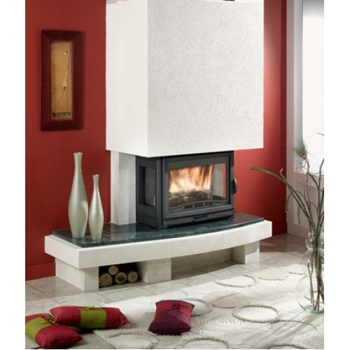 Трехсторонний камин Chazelles CS33 изготовляется из прочного декоративного камня Mauzens, Bretignac, Gard и мрамора породы Tireno, Marquina, Alicante и Olympia.