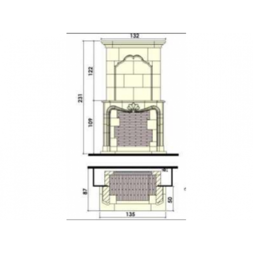 Камень белый патинированный. Кожух в элегантном стиле. Высота с каменной балкой 109 см.