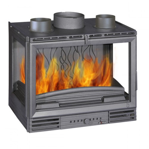 Каминная топка Инвикта Инсерт Гранд Визьон Турбо 700 с боковым стеклом с двумя двухскоростными осевыми турбинами предназначена для обогрева не только того помещения где установлена, но и смежных помещений за счет разводки тепловых труб.