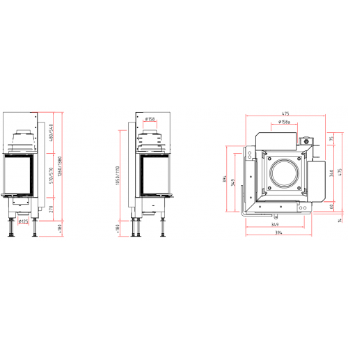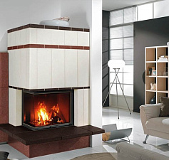 • Каминная топка для угловых каминов, с цельным угловым стеклом.