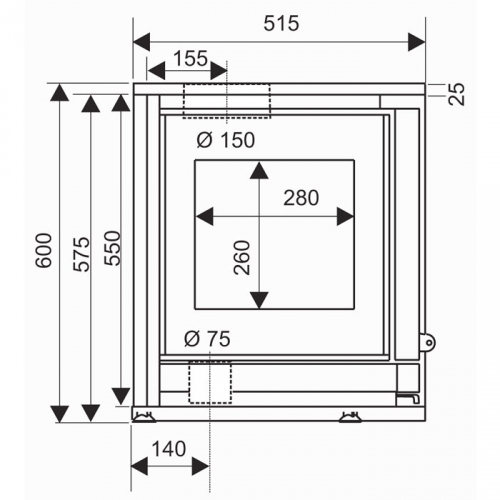 • Диаметр дымохода, мм 150