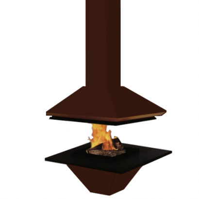 Центральный открытый камин квадратной формы с двойным корпусом.
