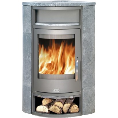 Печь камин ABX Polar 6 угловой компактна и практически не занимает места в комнате. Вы сможете наблюдать за горящим огнем, находясь в любой точке комнаты. Для наилучшего обзора в угловой печь камин устанавливают изогнутое стекло. Полукруглое стекло, повторяющее форму изогнутой двери топки, очень прочное, однако следует избегать механических ударов. Можно разогреть чай в специальном углублении. Есть отделение для сушки дров.