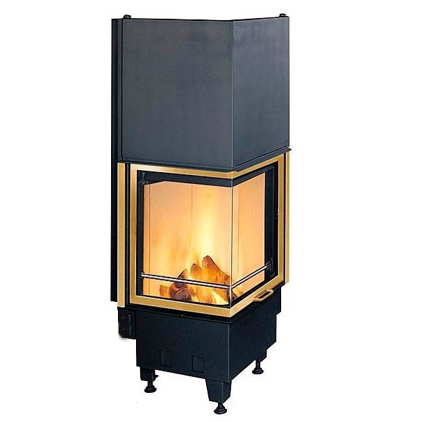 Топка с боковым стеклом, вертикальное и боковое открытие, футеровка - шамот, рамка дверцы латунная.