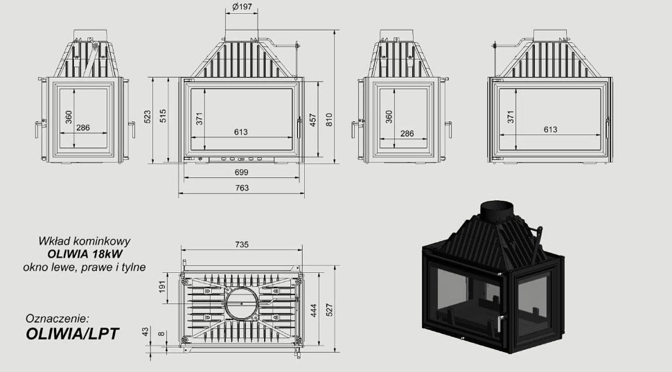 Топка OLIWIA/LPT, тунельное, стекло слева справа