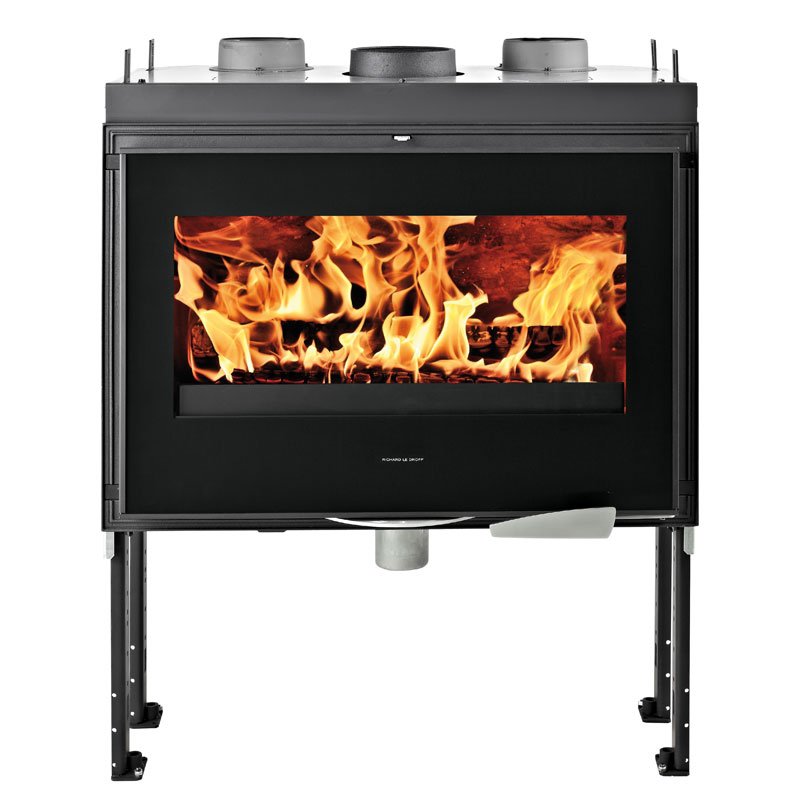 Топка с технологией FSU. Дверь открывается вбок. Наружный забор воздуха. Регулируемые ножки. Обдув стекла.
