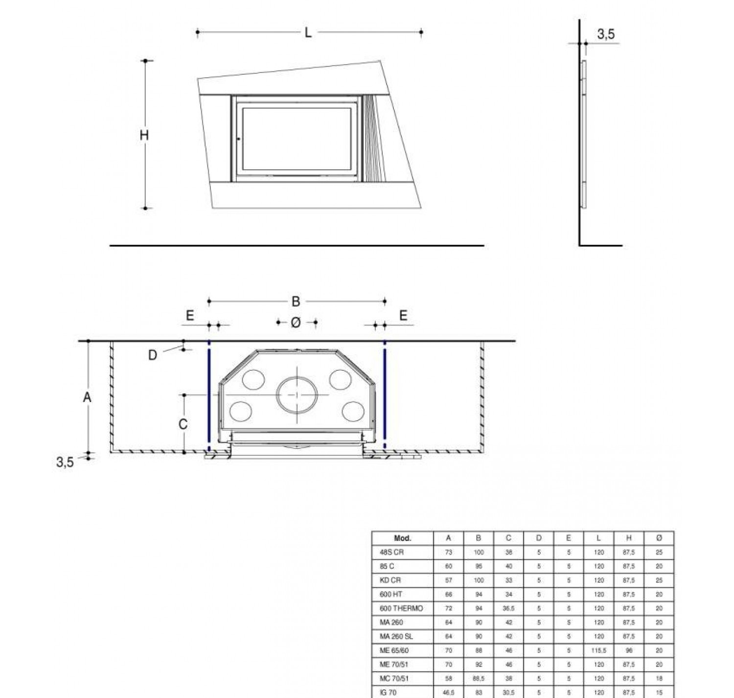 Угловой встраиваемый Биокамин